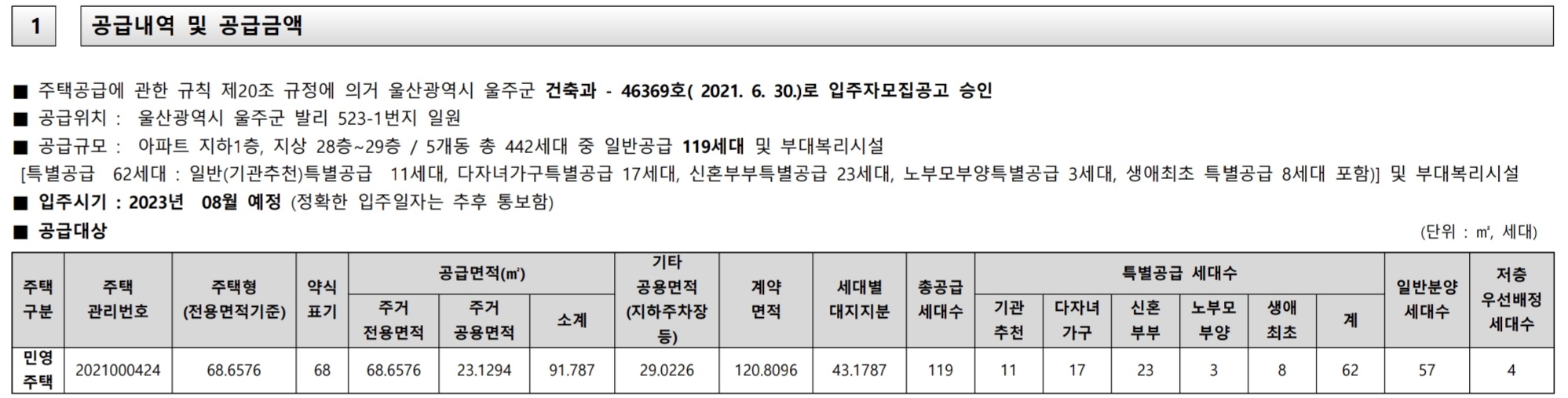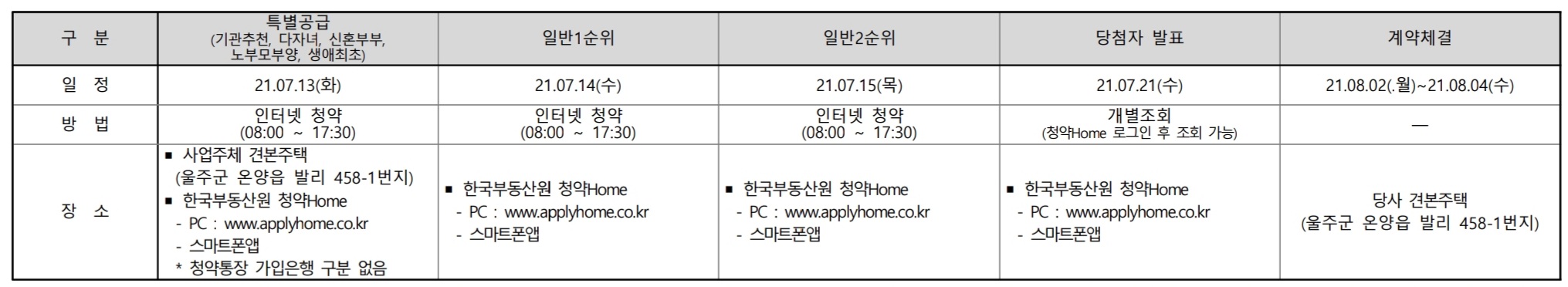 : 청약신청자 중 같은 순위 내에 경쟁이 있을 경우 해당 주택건설지역인 울산광역시 거주자가 우선함.