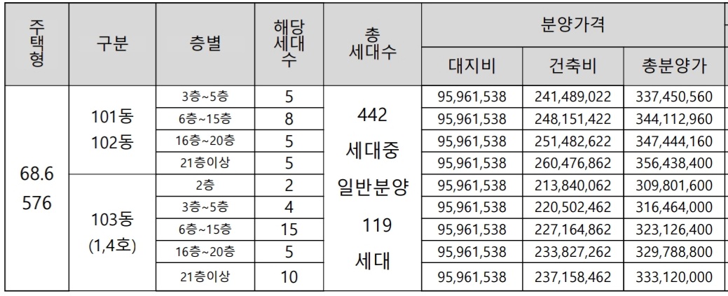 1) 68 : 3.10억 ~ 3.56억 [1,000만원]
