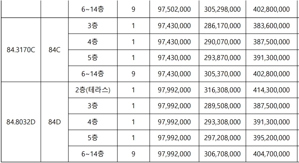 4) 84D : 3.88억 ~ 4.14억 [1,630만원]